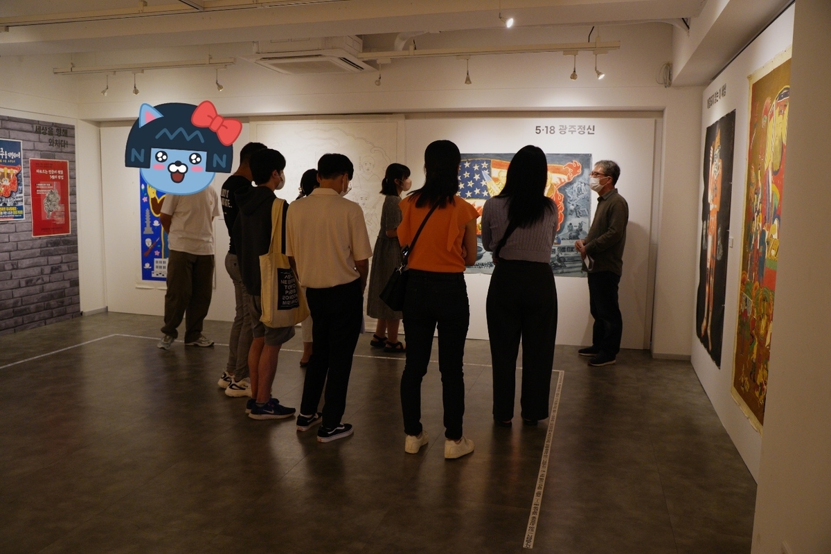 今だけイ・サンホさんという民衆美術画家の先生が展示を行っていて、直接展示解説をしてくださるということだったのでみん会で訪問してみました。